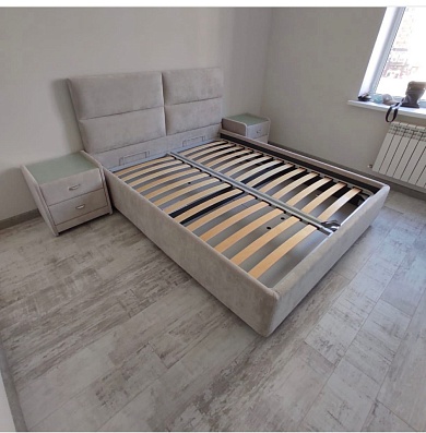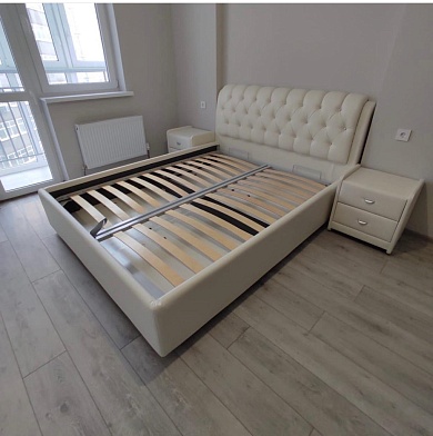 Возможность установки подъемного механизма со вместительным бельевым коробом, 13 см глубиной. Дно бельевого ящика легко сдвигается, что позволяет просто убраться под кроватью.