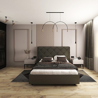 Царги из ЛДСП увеличенной толщины придадут строгость и надежность. Благодаря сочетанию усиленных металлических уголков, ребер жесткости и эксцентриковой стяжке конструктив кровати получается жёстким и прочным.