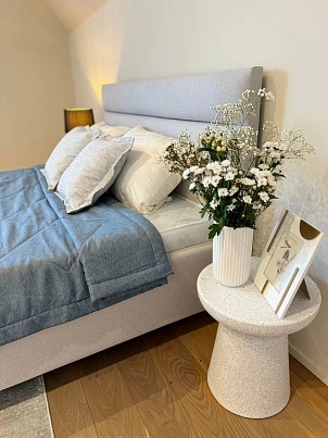 Кровать мечты! Хотелось именно такую, комбинированную, с мягким изголовьем и деревянным каркасом. Также был запрос на высоту, для возможности проводить влажную уборку под ней, чтоб был вместительный короб для хранения, но самое роскошное - это возможность легко сдвигать/убирать дно короба, значительно увеличивая тем самым глубину пространства для высоких предметов. Например, трехлитровый баллон совершенно спокойно помещается по высоте, даже с запасом (хозяйкам на заметку!) Искали довольно долго по всем офлайн и онлайн магазинам, сайтам. Уже была мысль делать где-то по индивидуальному заказу, так как размениваться от безысходности на другие варианты совсем не хотелось. Ведь это та покупка, которая должна радовать долгие-долгие годы, без каких-либо и компромиссов. И вот свершилось, она нашлась, спасибо Сонум! В этой кровати идеально все под наши запросы. Купили размер 180х200, цвет дуб сонома, ткань изголовья рогожку легко заменили на другую, выбор огромный. Здесь же купили высоченный матрац Relax Optima, с натуральным латексом, анатомический, ортопедический, мягкий как облачко с одной стороны, чуть жестче с другой. Выбирали между слоем меморикс и латексом. Плюсы натурального латекса остановили выбор именно на этой модели. Мягко, не жарко, долговечно, обалденно! На одну отдохнувшую семью в стране стало больше! Спасибо!